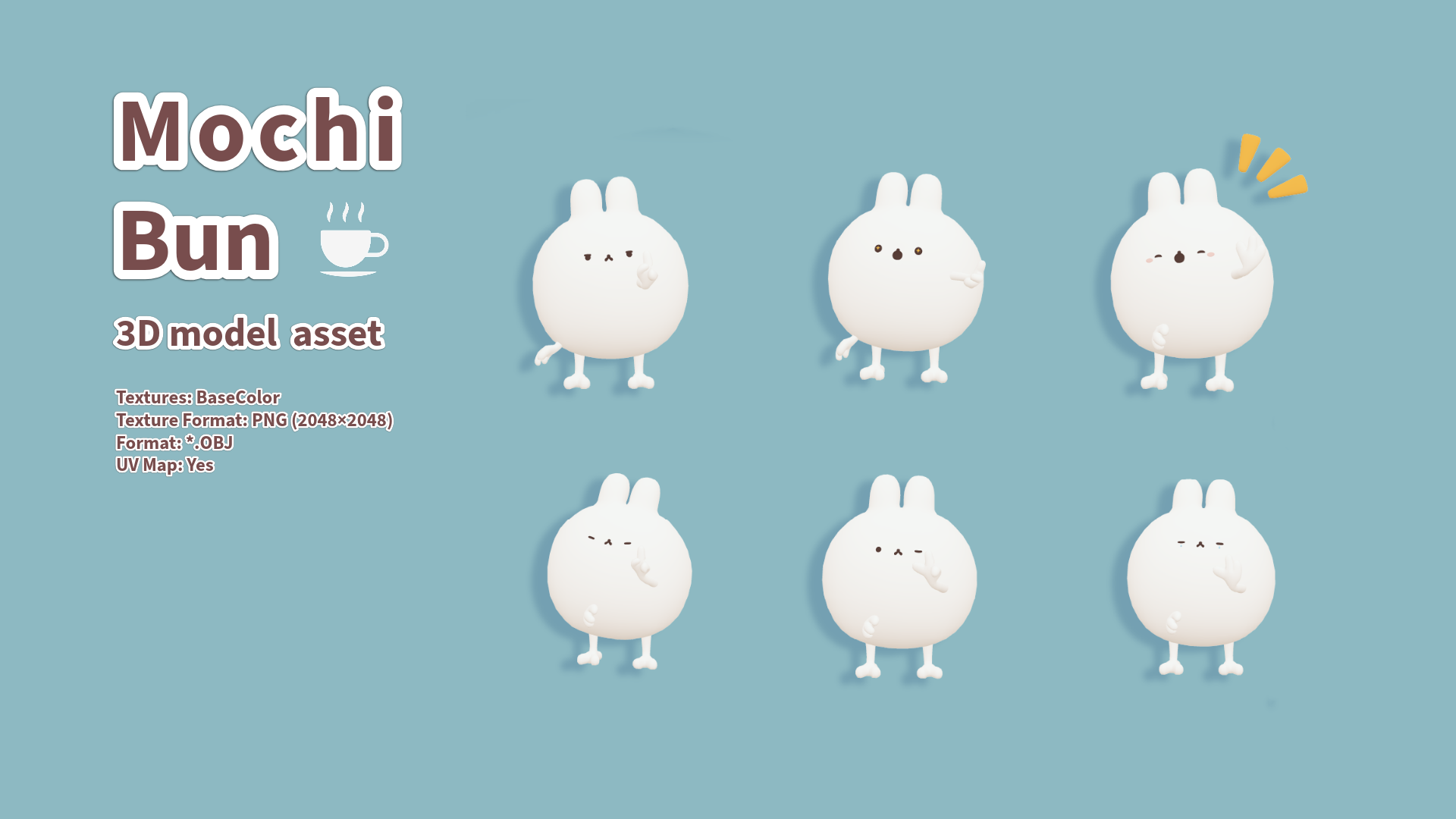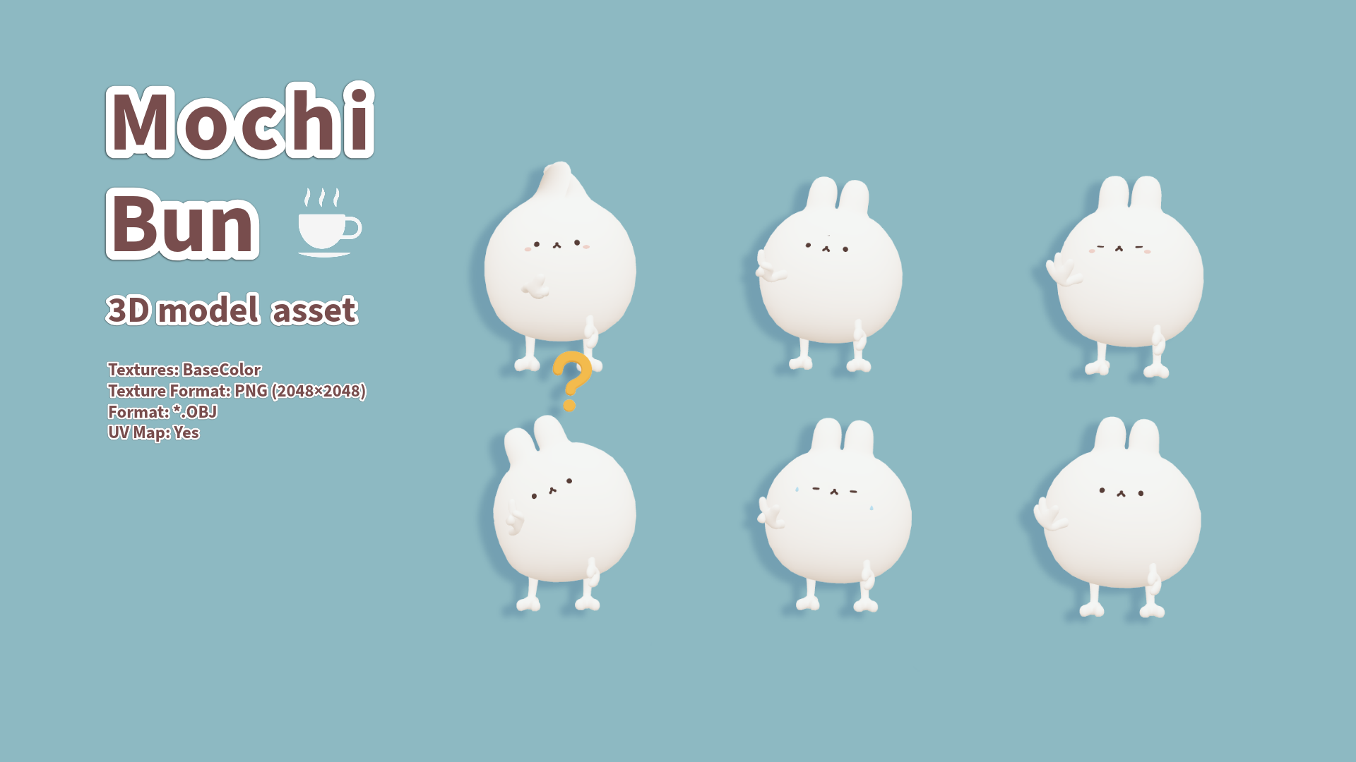 A round and puffy bunny character that looks like a soft mochi ball.